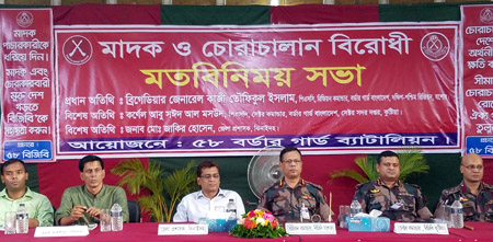 সীমান্তের কোন চোরাকারবারীকে ছাড় দেওয়া হবে না। চোরাকারবারীরা যতবড়ই ক্ষমতারধারী হোক না কেন তাদেরকে আটক করা হবে। কোন চোরাকারবারী বা মাদক ব্যবসায়ীদের সন্তানরা ভালো চাকুরী করতে পারে না। আমাদের দায়িত্ব সীমান্তবাসীকে নিরাপত্তা দিয়ে শান্তিতে রাখা। গুটি কয়েক চোরাকারবারী ও মাদক ব্যবসায়ীদের কারণে সীমান্তবাসীদেরকে অশান্তি ঘটাতে চাই না আমরা। আমরা চাই শান্তি। তাই সীমান্তের চোরাকারবারীদেরকে ধরার অভিযান চলছে চলবে। গতকাল বুধবার বিকালে ৫৮ বিজিবির অধিনায়ক লেঃ কর্ণেল জিল্লুর রহমানের সভাপতিত্বে ঝিনাইদহের মহেশপুর অডিটরিয়ামে মত বিনিময় সভায় দক্ষিণ-পশ্চিম রিজিওন কমান্ডার ব্রিগেডিয়ার জেনারেল কাজী তৌফিকুল ইসলাম প্রধান অতিথির বক্তব্যে উপরোক্ত কথা বলেন।