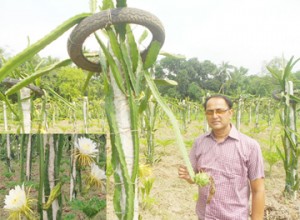 সৌখিন ফল চাষি বোরহান উদ্দিন (৪৫) এলাকায় এবার চমক লাগিয়ে দিয়েছেন। ১ বিঘা (৩৩শতাংশ) জমিতে ব্যতিক্রমী ফল ড্রাগন চাষ করে নজর কেড়েছেন অনেকের। ড্রাগনের চাষ ইতিপূর্বে কখন ও হয়নি এ এলাকায় । ড্রাগনের ধবধবে সাদা ফুলের সৌন্দর্য উপভোগ করতে ভোর বেলা ক্ষেতের পাশে এলাকার মানুষ ভীড় জমায়। ড্রাগনের ফুল রাতে ফুটে ভোরের আলোতেই নষ্ট হয়ে যায়। বিদেশী এই ফল চাষে এলাকায় রীতিমত সাড়া ফেলে দিয়েছেন বোরহান উদ্দিন। ঝিনাইদহের কালীগঞ্জে উপজেলার নিশ্চিনন্তপুর গ্রামের বাসিন্দা বোরহান উদ্দিন কালীগঞ্জ উপজেলার খামার মুন্দিয়া গ্রামের মাঠে গত বছর ১ বিঘা জমিতে ৫৮০টি ড্রাগনের চারা রোপন করেছিলেন। সঠিক পরিচর্যা করায় ১৬ মাসে গাছে পরিপুষ্ট ফল এসেছে। রফতানিযোগ্য এই ফলের ভবিষ্যৎ বাণিজ্যিক সম্ভবনা নিয়ে আশাবাদী এ সৌখিন ফল চাষি প্রথম বছরই লাভের আশা করছেন।