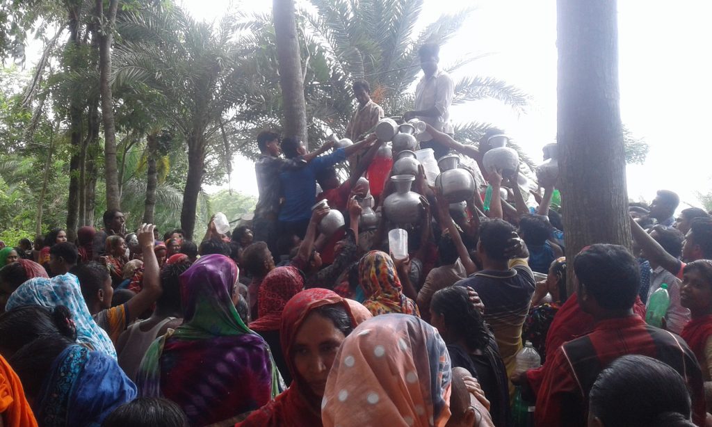 সোমবার সকালে সরেজমিনে গোপালপুর গ্রামে দিয়ে দেখা যায় মাঠের মধ্যে একটি মেহগুনি বাগান। সেখানে হাজার খানেক মানুষ অপেক্ষা করছে। যাদের বেশির ভাগই নারী। কিছু বয়োবৃদ্ধ পুরুষ আছে, তবে কিশোর-যুবকের সংখ্যা কম। বেশির ভাগ মানুষ এসেছেন কলস আর বোতল নিয়ে। একদল মানুষ পাইপের মাধ্যমে সবাইকে পানি দিচ্ছেন। মাঝে মধ্যে পাত্রে দিচ্ছেন, আবার ছড়িয়ে সকলকে ভিজিয়ে দিচ্ছেন।