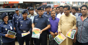 এ সময় পুলিশ সদস্যরা ঘন্টাব্যাপি বিভিন্ন শ্রেণী-পেশা সামুষের সচেতনাতমূলক ১ ৫হাজার লিফলেট  ও পোষ্টার বিতরণ করেন।
