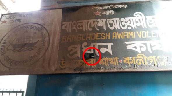 অফিসটিতে গিয়ে দেখা যায়, সাইন বোর্ডটিতে লেখা বাংলাদেশ আওয়ামী স্বেচ্ছাসেবক লীগ, প্রধান কার্যালয়, উপজেলা শাখা, কালীগঞ্জ, ঝিনাইদহ। সাইন বোর্ডে ঝুলানো আছে লজিটেক কোম্পানির একটি সিসি ক্যামেরা। যেটা দিয়ে সামনের রাস্তার পুরো অংশ দেখা যায়। সামনে দিয়ে কেউ অফিসে প্রবেশ করলে তিনি ঘরের মধ্যে থেকে দেখতে পারবেন। এই অফিসটির পিছনে নদী।