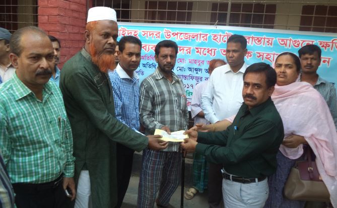 আগুনে ক্ষতিগ্রস্থ ব্যবসায়ীদের মাঝে আর্থিক অনুদান প্রদাণ