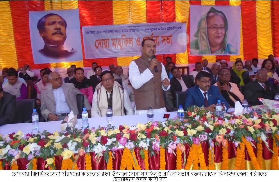 কথাটি বলেছেন ঝিনাইদহের জেল পরিষদের নব নির্বাচিত চেয়ারম্যান কনককান্তি দাস। গতকাল রোববার ঝিনাইদহ জেলা পরিষদের কার্যভার গ্রহন উপলক্ষে দোয়া মাহফিল ও প্রার্থনা সভায় ঝিনাইদহ জেলা পরিষদের চেয়ারম্যান কনক কান্তি দাস ও সদস্যবৃন্দরা আনুষ্ঠানিকভাবে দায়িত্বভাব গ্রহন কালে তিনি এই কথা বলেন ।
