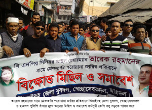 তারেক রহমানের নামে গ্রেফতারি পরোয়ানার প্রতিবাদে ঝিনাইদহে মিছিল ও সমাবেশ"