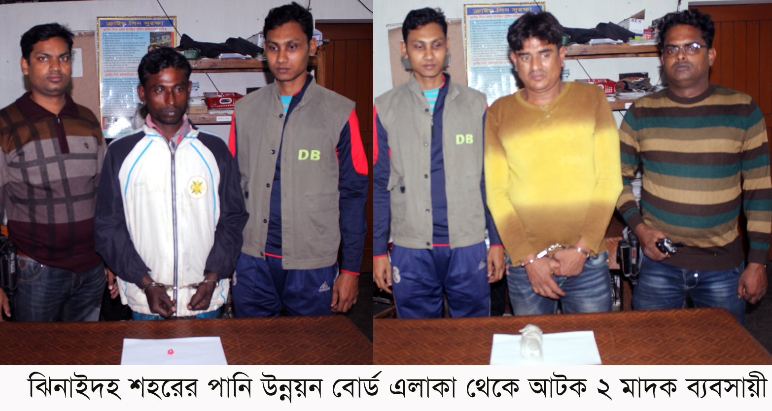 ঝিনাইদহ শহরের পানি উন্নয়ন বোর্ড এলাকা থেকে ইয়াবা ও গাজাসহ ২ মাদক ব্যবসায়ীকে আটক করেছে গোয়েন্দা পুলিশ।