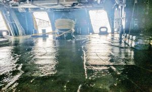 আরও একটি টুইটে তারা বলছে, গত ২৬ এপ্রিল থেকে তাদের এই যুদ্ধজাহাজ বঙ্গোপসাগরে শুরু হওয়া ঘূর্ণিঝড়ের সঙ্গে সহজেই টহল দিচ্ছে। কিন্তু শেষে এসে ২ মে এটির প্রকাশ করা কিছু ছবিতে দেখা যাচ্ছে ভেতরে পানি ঢুকেছে এবং সেটা অনেকটা কাত হয়ে হেলে যাচ্ছে।