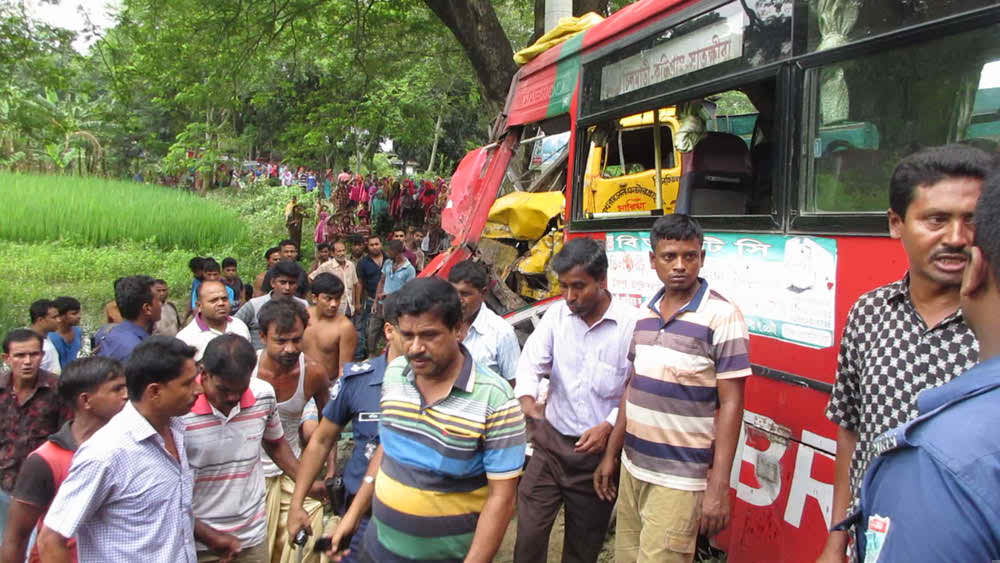 এতে চালক, হেলপার ও বাসের ২০ জন যাত্রী আহত হয়। এদের মধ্যে বাস চালক নাজমুল হাসান ও যাত্রী লাবু হোসেন নামের দুই জনের অবস্থা গুরুতর বলে জানিয়েছে চিকিৎসক।
