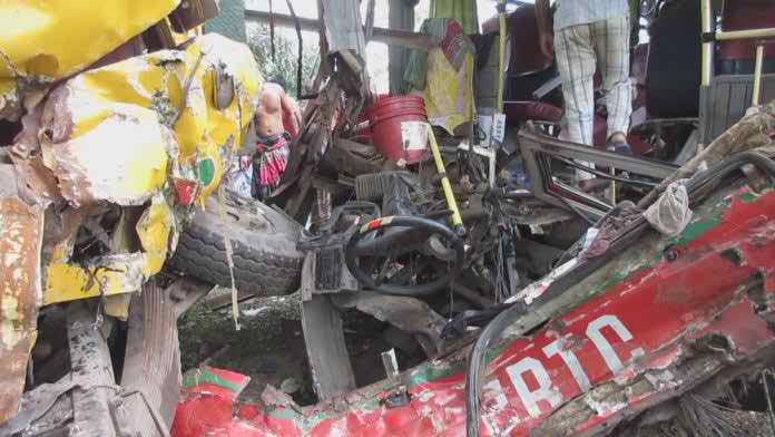 বাস-ট্রাকের মুখোমুখি সংঘর্ষে ২০ জন আহত