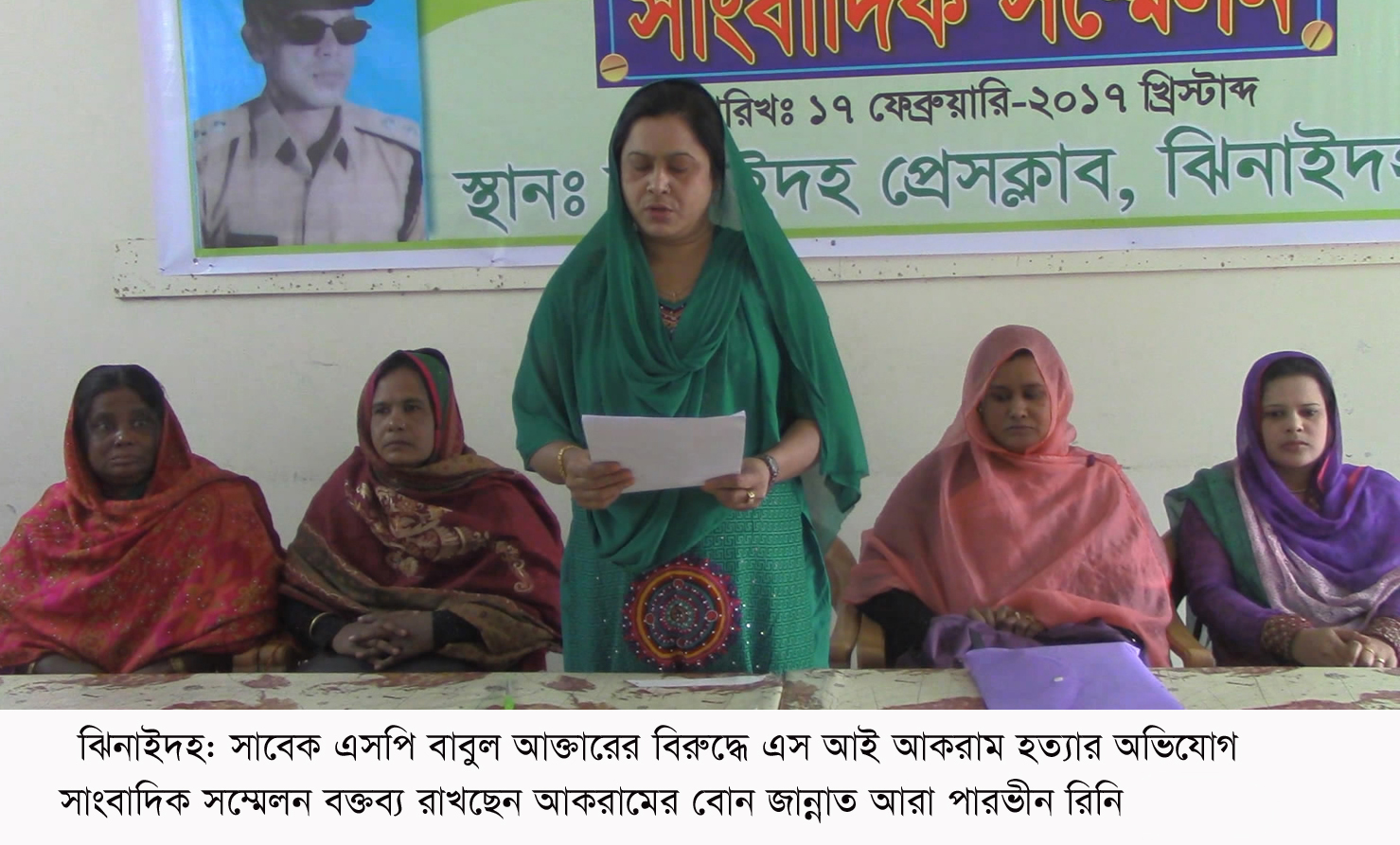 সাবেক এসপি বাবুল আক্তারের বিরুদ্ধে এস আই আকরাম হত্যার অভিযোগ এনে ঝিনাইদহে সাংবাদিক সম্মেলন